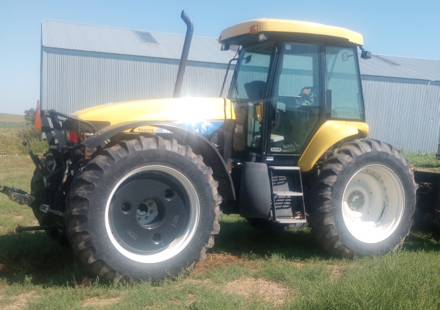 New Holland TV6070 Bi-directional w/84LB Loader w/5-tine Grapple, 16.9-38 Tires, (1200 hrs) One Owner (ser#: RVS141109) ONE OWNER