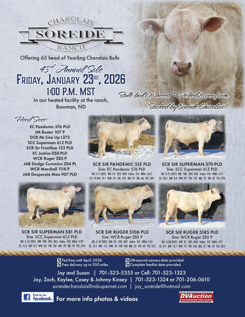 Soriede Charolais Ranch 8307 149th Ave SW, Bowman, ND, 58523